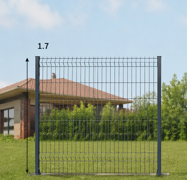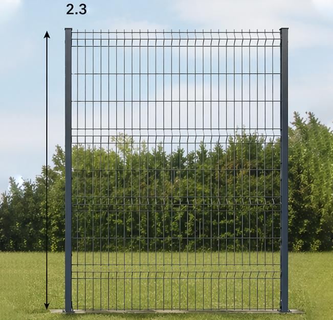 Установим сетку или панели между стойками — ваш забор приобретет законченный вид.